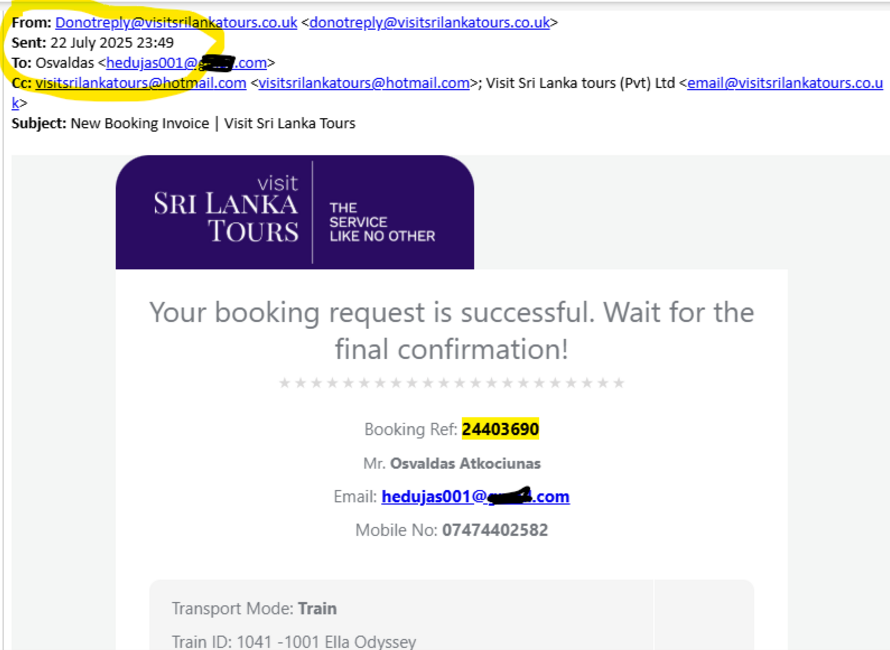Cc: visitsrilankatours@hotmail.com <visitsrilankatours@hotmail.com>; Visit Sri Lanka tours (Pvt) Ltd <email@visitsrilankatours.co.uk>
