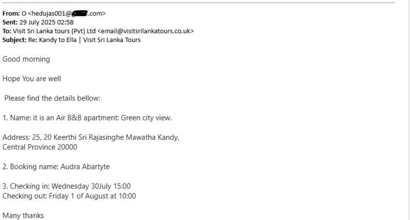 On Wednesday, 23 July 2025, Visit Sri Lanka tours (Pvt) Ltd <email@visitsrilankatours.co.uk> wrote: