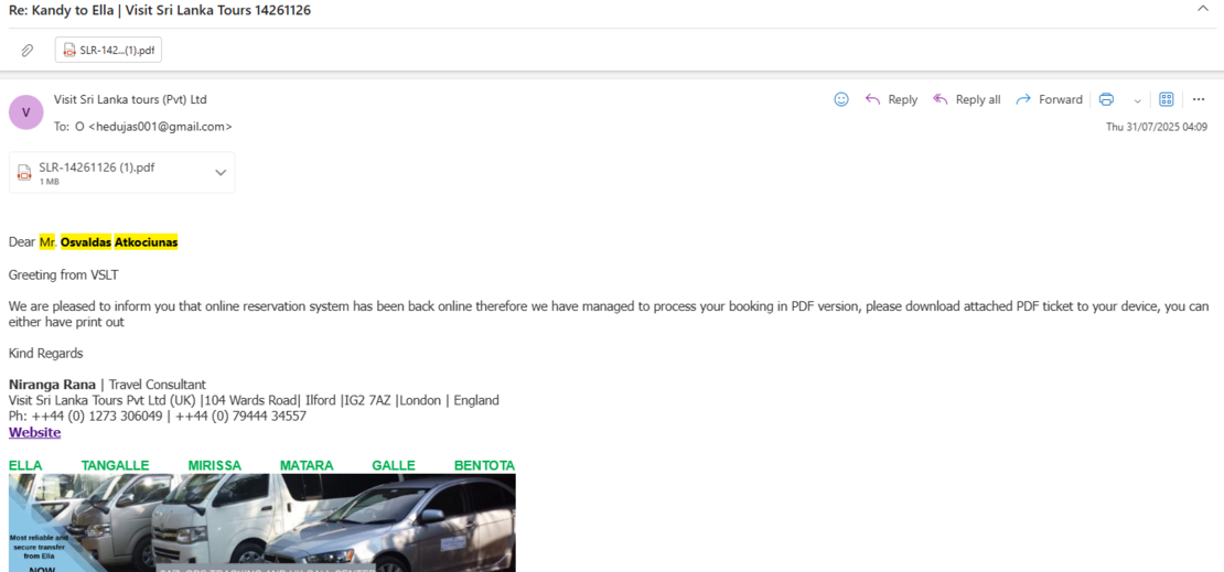 To: Visit Sri Lanka tours (Pvt) Ltd <email@visitsrilankatours.co.uk>