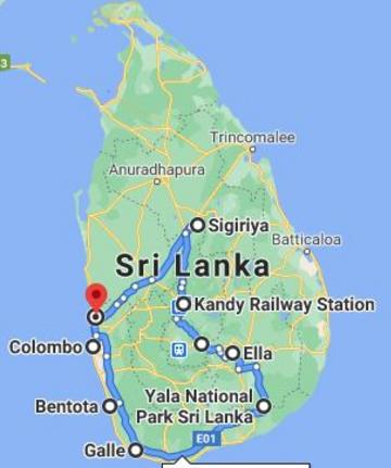 Cave Temple, Sigiriya Rock Fortress, Polonnaruwa ruins, Kandy Temple of tooth Nuwara Elliya Tea Plantation, Ella Waterfalls, Safari at Yala National Park, Galle Dutch Fort and Museum, Kosgoda Turtle Hatchery, Bentota Beach, Colombo City tour