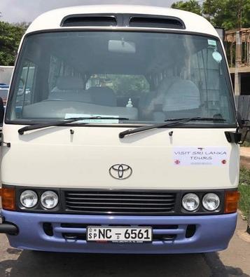 there holding a Visit Sri Lanka Tours signboard.